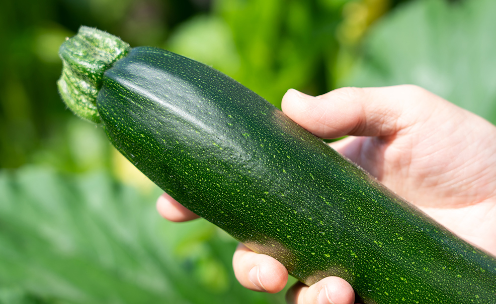緑色で細長くツヤのある見た目から、キュウリの仲間だと思われがちなズッキーニ。果肉はなすに似た肉質ですが、キュウリでもなすでもなく、実はかぼちゃの仲間なのです。